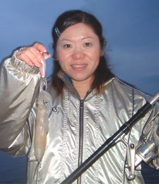 まわりがほぼ浮き釣りで、誰も釣れていなかったので、エギで釣って注目あびてやるぜぇ〜ってはりきって昨日パパで購入したロッドでがんばったけど、横にいた奥様があっさり大型のマメイカを釣り周りの注目をあびていた。。