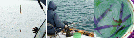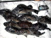 ![]() 延長された寿都防波堤(未完成) ![]() 黒ガシラ36〜30cm ![]() 50cmのボラを初め、ホッケやカレイ |