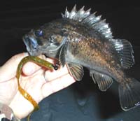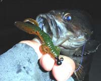 2月3日夕方。 半田さんと釣りしてきましたー。 到着してすぐバルキーホグのテキサスリグにツン!と超ショートバイト! まったりモードな僕にはタキオン(超高速フッキング)なんて無理です(笑) そんなこんなであたりは暗くなり半田さんは仕事に行ってしまいました。 そこで僕はちょっと本気モードで釣ろうかとハゼドンのライトテキサスでボトムを探ってみます。 すると1投目、ちびカジカが釣れてきました。 ですが・・・後が続きません。 小一時間続けてみたのですが2バイト有っただけ・・・ そこでクランクで中層をひいてみることに♪ しかしまたしてもバイトがありません・・・そこで最近見たビデオ「Xバイツ」で見た技(にや)を試してみることに。 するとその2投目で・・・グン!釣れたー!!!てな感じでソイを7,8匹追加して帰ってきましたー。オールリリースですよーん♪ ヒットルアー:ベイトX、マーゲイ、ママドン(ベッドインピンク♪) |