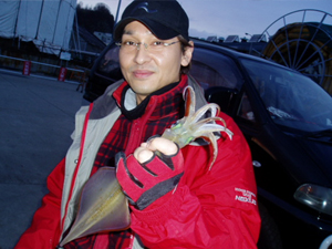 コメント: なんと一投目でヤリイカヒット!「ん〜天才!(笑)」