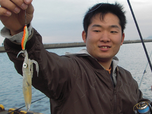 コメント:PAPAの前で釣れました!ヤリイカが釣りたかったです。 釣り人:S木さん 場所:小樽港 うまや岸壁 日時:H17 6/13 M4:00、PM6:00、PM8:00 ルアー:ヤマシタ エギ エギスッテ オレンジ、ピンク、グリーン 1.8号