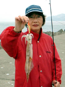コメント:コツを掴んでからというものの、エギングにハマっちゃいました!今ではイカはエサより手軽なエギングが好きです♪ 釣り人:Kママさん 場所:小樽港 北防波堤 日時:H17 4/28 PM3:00〜PM4:00 ルアー:ヤマシタ エギ王Q 光宮