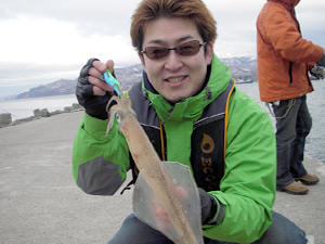 コメント:やっぱり釣れるナ… 釣り人:はんださん 場所:小樽港 北防波堤 日時:H17 4/29 PM3:30 ルアー:フィッシュリーグ エギリー チャートシュリンプブルー