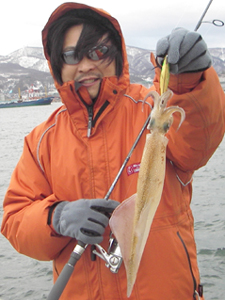 コメント:今晩のイカ丼が楽しみ♪(ジュル♪) 釣り人:ケンさん 場所:小樽港 北防波堤 日時:H17 4/29 PM4:00 ルアー:ハヤブサ 乱舞 グリーン