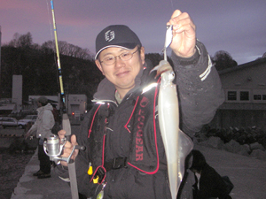 コメント:ダートMAXとエギリーの使い分けで釣果2倍!? 釣り人:かしさん 場所:小樽港 北防波堤 日時:H17 4/29 PM7:00 ルアー:フィッシュリーグ ダートMAX イワシ