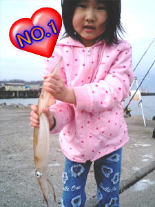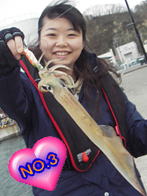 釣り人:奈津さん 場所:小樽港 北防波堤 日時:H17 4/29 PM6:00 ルアー:ヤマシタ エギスッテSF |