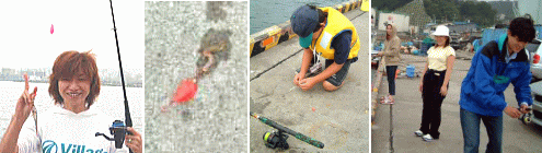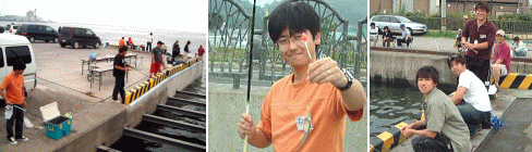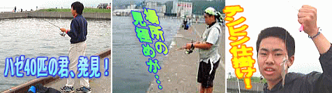 色内埠頭のコの字です。 耕くん発見! 彼はPAPAサイトでも妹とハゼ40匹を釣り上げたツワモノだ。 大会でも期待できそう! コの字は人気のスポット。ハゼをテンビン仕掛けで釣り上げていた菅原くんを初め、若者が集い、ハゼを釣り上げていた。 |