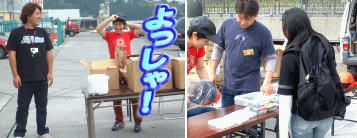 | 大会一時間前に受け付けに戻り、ハゼ丼や賞品の準備に取り掛かる。 途中でストップフィッシングをしてくれたATXさんとT氏にハゼ丼を手伝っていただく事に!感謝! さぁ、ラスト1時間前みなさんハゼ釣り頑張って下さいね! |