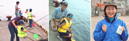 さて、場所を変えましてうまや岸壁です。 ここでは、ハゼ釣りのインストラクター、ヤマシタの工藤さんの「チビっこスクール」の会場となりました。 ちびっこに混じり、大人のグループも! 餌も自分で付けれる子がほとんどで、大人顔負けでした(笑) |