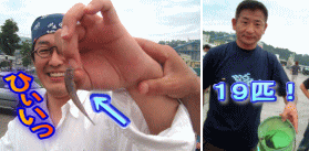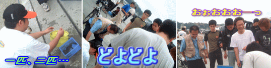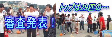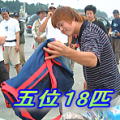 突き出して大きく見せろ!と強引に友人に手を押される五十嵐さん(笑) 前回も出場の岡本さん、流石の貫禄! 19匹の釣果を叩きだした! これは上位入賞だ!うーん、結果発表が待ち遠しい! |