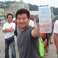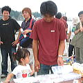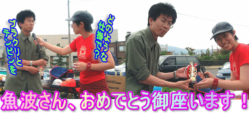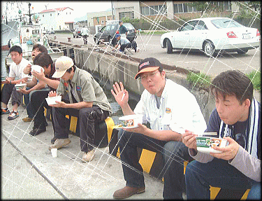 | 裏話A …ここで裏話を一つ。 昨年と変わらず最後の最後まで天ぷらを揚げ続けたPAPA軍団。いつもお疲れ様です。 さぁ、皆さん、客は減った。ハゼ丼をかっ食らおう。思う存分、怒涛の如く喰らうのです… 「あ、ごはん おわりでーす。」 ………この瞬間。 PAPA軍団のハゼ丼は500円もらっといて天ぷらだけになりました。 おかわりさせすぎたかもしれぬ。来年からは食券を配り一人一杯にさせていただく決意をしてみるが既に遅く。 これでは、申し訳なさ過ぎると心底困っているとかしさんが登場。仕事前に寄ってくれたのだ。 「ハゼ丼は?え、ご飯がない?じゃ、買いに行って来るね」 「え?ハゼ刺しするの?醤油がない?PAPAに借りに行って来るね」 かし様(きらきら…) 「あぶらも足りないよ。塩味でも食いたいね、よし、塩も」 おかっちさんも走る。 ATXさん、T氏、じんさん、まちゃ、tomoyaくんが天ぷらを揚げ続ける。 そして、切れそうになっていたあぶらが到着、ついで数件回ってやっとご飯を手に入れてきてくれたかしさんのおかげで全員にハゼ丼がやっと行き渡ったのです。 ほんとにほんとにご苦労さん!!! |