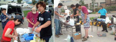 ![]() ご飯→タレ→具→タレの順で各コーナーを各自回遊してもらう。 |