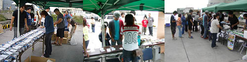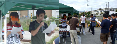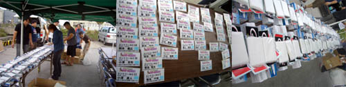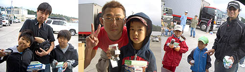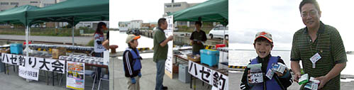 | 今年で七回目となりましたフィッシングPAPA主催のファミリーハゼ釣り大会! 大会前から随分と「いつやるんですか!?」とのお客様からの期待の声も高くやる気満々で9/9を迎える運びとなりました。 なのに… ![]() 台 風 接 近 。うっそーん。 中止もあり得るか!?と戦々恐々としてましたが無事開催されまして( ^ ^ ) 今回は初の試みとなる「ジュニア部門」を新たに設置。 小学生以下のお子ちゃま達のハゼ釣りにも特に熱が入ることでしょう! ![]() なお、この大会の様子は「北海道新聞」に掲載される予定です( ^ ^ )/ 【山本記者(右)に質問を受ける管理人(中央)】 ヘナチョコな腰つきに注目。北海道新聞、カラーイラスト中心で描かれた「しりべし旅日記」をお見逃し無く! イラストレーターは画面左のイケ面兄さんです。 9/18(ずれる場合もございます)です。必見! さて、今回お手伝いいただきましたのはアイビック木村さん、林さん、末永さん、札幌ベイト山田さん、ヤマリア石田さん。 一般参加からKさんママ、高川ママさん、小西さん、しんじさん、田中さん、かしさん、おかっちさん、ヤッチさん、中澤さん、まちゃ、松本くんの皆様が、お手伝いしてくださいました! 大感謝で御座います!! ![]() ……しんじさん?早速会場設置開始!!名札から参加賞をズラリ並べます。 ![]() お客様到着前に一日のスケジュールを確認。不備はないかな? ![]() 時間前ですが、早々来てくださった方より受付開始しました。 シェフと甥っ子の直矢くん一番乗りです! ![]() 参加賞がズラ〜リ!どんどんお持ちくださいね! ![]() 今回の参加賞は呉羽のラップ、ガマカツシール、札幌ベイトさんの生イソメ〜! ダイワ携帯灰皿に携帯釣り情報サイト釣り友さんからティッシュとステッカー!! ![]() ところでコレなに? ![]() ん〜? ![]() なんと直人管理人によるお子ちゃま特別参加賞! カブトムシ、「卵」「幼虫」をプレゼント! ムシキングー!もらっていいの〜!? ![]() 「これは幼虫になっているよ〜」 ![]() 直矢くんも協力してくれました( ^ ^ ) 今回ご協賛いただいた各メーカー様、問屋様、個人協賛者様を看板に明記! ![]() モデルありがとうございます( ^ ^ ) 参加者の皆さんが続々到着!今日は頑張ってくださいね! ![]() さぁお時間となりました。直人管理人から大会挨拶をば。 ![]() 「おはようございまーす!」 ![]() 今年もズラリ揃った!100名超えのエントリー! ![]() その内ジュニア部門は21名!頑張ってね〜!!!!! ![]() 一匹で勝負は変わります、最後まで諦めずに頑張ってくださいね! どうぞ、皆さん不正のないよう、 正々堂々と勝負して下さい!!! ※悪いことしてる人がいたら管理人に報告くださいませね ∠('0') ビシッ 今年も楽しみましょう!!! ![]() フィッシングPAPA管理人’S スタートフィッシングです!! NEXT→試合開始!!