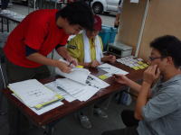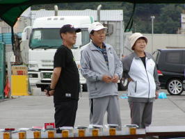 | 今年で八回目となりましたフィッシングPAPA主催のファミリーハゼ釣り大会! いつも気がかりな天候も今回は問題なく開催する運びとなりました。 AM5:00 当店前にて一日の大会の流れを打ち合わせし、AM6:00より 北浜岸壁にて会場作りです。 今回お手伝いいただきましたのはアイビックベイト木村さん、札幌ベイト山田さん。 一般参加から小西さん、田中さん、かしさん、おかっちさん、しましまさん、まちゃ、 の皆様が、お手伝いしてくださいました! 応援頂きありがとうございます。 PAPA社長が、見守る中、早速会場設置開始!! ![]() ![]() 名札から参加賞をズラリ並べます。 今回の参加賞は呉羽さんのラップ、ガマカツさんシール、札幌ベイトさんの 生イソメ〜!ピュア・フィッシングジャパンさんのサンドワーム、なかじまさんから 小ケースが出されました。 ![]() お客様到着前に一日のスケジュールを再確認。不備はないかな? ![]() ![]() 時間前ですが、早々来てくださった方より受付開始しました。 ![]() 当日参加の方は、こちらです。 ![]() ![]() ![]() 参加賞がズラ〜リ!どんどんお持ちくださいね! ![]() ![]() ![]() 今回ご協賛いただいた各メーカー様、問屋様、個人協賛者様を 看板に明記! ![]() 今回も「ジュニア部門」を設置。ご家族連れでのお子様の参加が 多数ありました。(ジュニア部門は、23名がエントリー) ![]() 特別参加賞として、かしさんよりなんとカブトムシ成虫ペアが 早いもの勝ちで5名様にプレゼント!! ![]() 5分もたたないうちになくなってしまいました。。。 ![]() なくなってしまったので、完売です!かしさん!! かしさん色々とありがとうございました。 会場前では、PAPA特製手作り仕掛・段差ブラクリなどの特別販売 をさせて頂きました。お買い上げ頂いたお客様ありがとうございました。 ![]() ![]() そろそろ、開会式の時間が迫ってきました。 ![]() さぁ、それでは、お時間となりました。PAPA管理人から大会挨拶をば。 「おはようございまーす!」 ![]() 今年もズラリ揃った!87名のエントリー! その内ジュニア部門は23名!頑張ってね〜!!!!! ![]() ![]() ![]() 一日の大会の流れが出場者に伝わったところで・・・・・・、今回の・・・・ ![]() 今回のレギュレーションは、前回大会同様の 総匹数 となります。 ![]() どうぞ、皆さん不正のないよう、正々堂々と 勝負して下さい!!! ![]() 一匹で勝負は変わります、最後まで諦めずに頑張ってください! ※悪いことしてる人がいたら管理人に報告くださいませね ∠('0') ビシッ 今年も楽しみましょう!!! ![]() スタートフィッシングです!! NEXT→試合開始!!