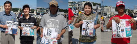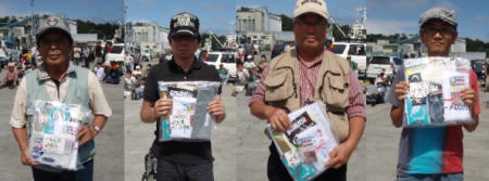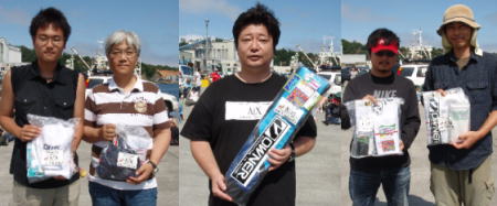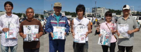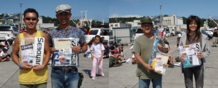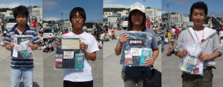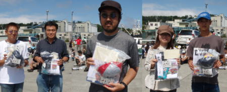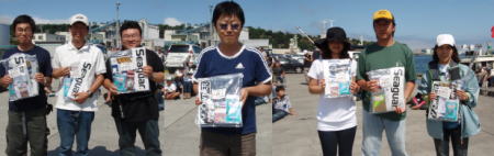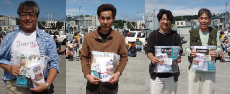 ジュニアの部を終了し、お次は大人の部の結果発表となりました。 さぁ、どれだけの釣果をたたき出したのかな? 大人の部、第五位は! ![]() 釣果45匹! 小澤 吉則さん いや〜、自分でもビックリです。北浜岸壁で 頑張って釣ってました。 ![]() さあ、第四位の発表です! 第四位、釣果57匹 富山 政明さん お立ち台まであと少し!!昨年は3位でした。 ![]() 色内埠頭のくの字のところでやりました。 思ったより釣果も出たのでよかったです。 ![]() ここからはお立ち台!第三位は… 釣果60匹!安藤 修次さん ![]() 昨年のチャンプです。また、表彰台です。おめでとうございます。 今年も北浜岸壁でやってました。調子もよかったです。 ![]() 引き続きまして、第二位ですが、釣果が、え・・・・、73匹です!! 第二位!釣果73匹 土井 健二さん ![]() 73匹の釣果は、凄いですね〜。おめでとうございました。 ![]() さあ、気になる第一位の釣果ですが・・・・ なんと! 80匹です!!!!”! 釣果80匹! 小澤 真人さん ![]() 北浜岸壁での釣果。時間最後まで粘りの釣りが出来ました。 いい釣果が出て満足してます! ![]() おめでとうございます! ![]() 大人の部6位からお伝え致します。 6位から9位の方。来年は更なる上位狙って下さい! ![]() 10位から13位まで。常連のお客様、来年もお願い致します。 ![]() 14位から18位まで。 遠くは神奈川県からの参加! 毎年ありがとうございます! ![]() 19位から22位まで。同匹数は、ジャンケンで順位が決まります。 ![]() この辺の順位よりジャンケン順位が増えてきました。勝敗はいかに!!! ![]() またまたジャンケンです! ![]() 23位から27位まで。ジャンケン勝てましたか? ![]() 28位から32位まで。まだまだ、続きます! ![]() 33位から38位まで。まだまだ、続きます! ![]() ここら辺になるとジャンケンが多くなってきます。勝てました?? 39位から45位まで。 ![]() 46位から50位まで。 ![]() 51位から53位まで。 ![]() 54位から57位まで。 ![]() 58位から62位まで。 ※ニ名表彰式不参加 ![]() と毎回参加の顔ぶれ、初参加の方と2008年を飾って下さいました。 一匹の差がこんな時に!!次回は更に頑張っちゃうもんね!! 家族で参加の皆様、一番の釣果を上げたのは誰でしたか?? 昨年と今年ではどっちが釣果が出ましたか? 次回の大会はどう攻略しようかな! 来年は見てるだけじゃなくてぼくも私も、全員参加だ! イエイ!!今日は楽しんだよ!! 釣果は残念だったけど、次のジャンケンが待ってるぜ…っ!!!!! そ う な の で す 。 ハゼで負けても次は運で勝てるジャンケン大会が待っているのです! NEXT→ジャンケン大会・集合写真・順位表