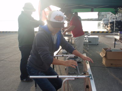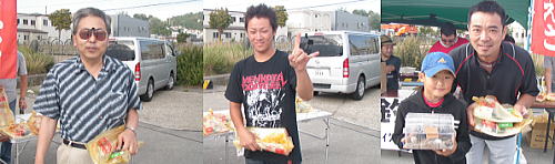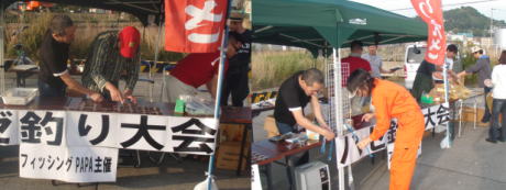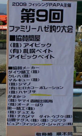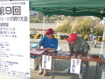 今年で9回目となりましたフィッシングPAPA主催のファミリーハゼ釣り大会! 昨年同様、今回も天候に恵まれました大会となりました。 AM6:00 当店前にて一日の大会の流れを打ち合わせその後、北浜岸壁にて 会場作りです。 今回お手伝いいただきましたのは札幌ベイト山田さん、アイビックベイト木村さん、。 一般参加からしんじさん、かしさん、田中さん、奈津さん、央さん、 まちゃ、おかっちさん、千春の皆様が、お手伝いしてくださいました! 応援頂きありがとうございます。 早速、本部となる北浜岸壁にて会場作り開始です。 ![]() 大会常連の北條パパさん&ママさん&朝陽君、お手伝い頂き ありがとうございました。画像↓は、北條パパさん。 ![]() こうして、会場作りも出来上がったところで、 ![]() 名札と参加賞をズラリ並べます。 ![]() ![]() 今回の参加賞は呉羽さんのラップ、ガマカツさんのハゼのレシピ&釣り方講座カタログ、 札幌ベイトさん、アイビックベイトさんから生イソメ〜!デュエルさんの総合カタログ、 が出されました。 ![]() そして、恒例の ![]() 毎度おなじみ、かしさんよりカブトムシ成虫ペアを頂きました。 かしさんいつもありがとうございます。 ![]() 柏木産 カブト虫成虫ペア 活きいいです〜。 ![]() ![]() ![]() 豪華客船アスカUが小樽に来航。かなりでかい!! ![]() 当店専務担当の受付準備態勢も整ったところで、受付開始です。 ![]() ![]() ![]() ![]() 今回ご協賛いただいた各メーカー様、問屋様、を看板に明記! 今回もたくさんのご協賛品頂きありがとうございました。 ![]() ご家族で参加の方やいつもの釣り仲間で参加の方など今年も幅広い年齢層 の大会となりました。総勢60名の参加がありました。 ![]() ![]() ![]() ![]() 約一年ぶりくらいの同級生との再会もあったりしました。 べべ元気にしてたか?![]() ![]() ![]() ![]() ![]() 今回も「ジュニア部門」を設置。ご家族連れでのお子様の参加が 多数ありました。(ジュニア部門は、12名がエントリー) 会場前では、PAPA特製手作り仕掛・段差ブラクリなどの特別販売 をさせて頂きました。お買い上げ頂いたお客様ありがとうございました。 ![]() そろそろ、開会式の時間が迫ってきました。 さぁ、それでは、お時間となりました。 「おはようございまーす!」 ![]() 今年は、60名のエントリー! その内ジュニア部門は12名!頑張ってね〜!!!!! ![]() ![]() 一日の大会の流れが出場者に伝わったところで・・・・・・、今回の・・・・ 今回のレギュレーションは、前回大会同様の 総匹数 となります。 ![]() 一匹で勝負は変わります、最後まで諦めずに頑張ってください! 今年も楽しみましょう!!! ![]() スタートフィッシングです!! NEXT→試合開始!!