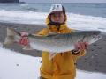 磯谷郡蘭越町にある「フィッシングエリア・尻別川」ここのニジマスのパワーは半端じゃありません。1〜2lb強いラインをご用意下さい。魚のコンディションも抜群! |
